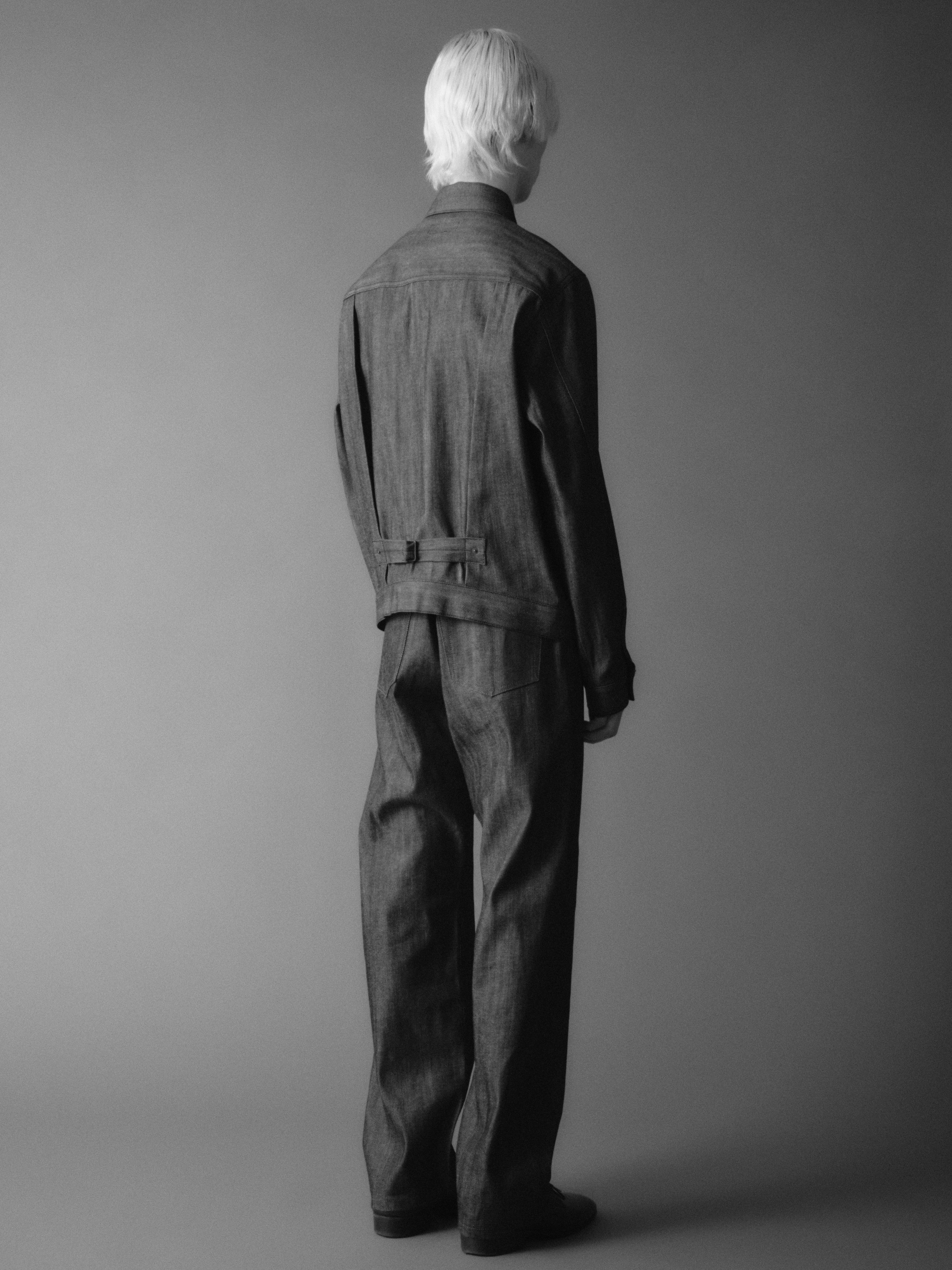 Relaxed mid-rise pants in Japanese white selvedge raw denim with a straight leg, tobacco topstitching, and classic 5-pocket construction.